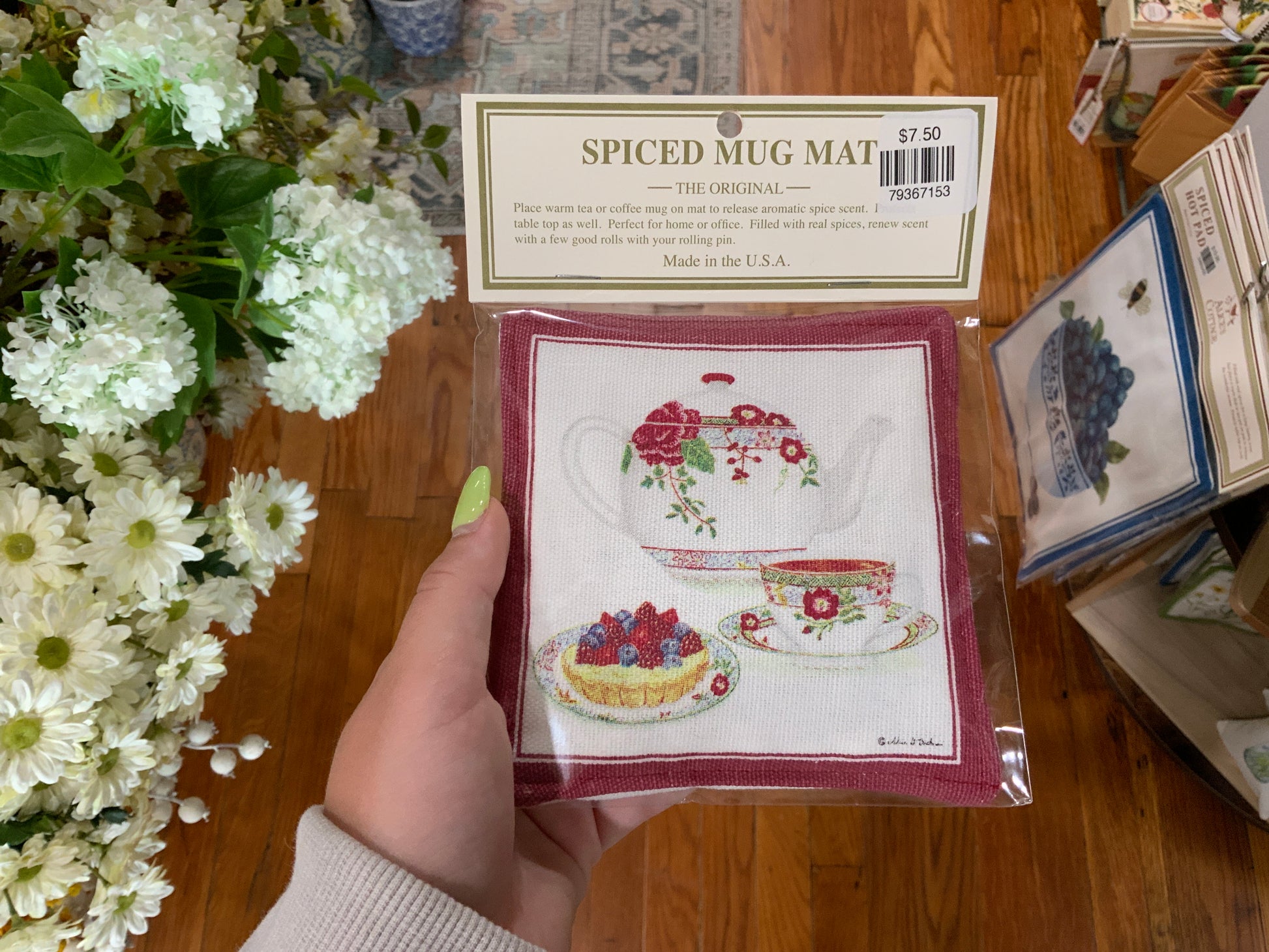 Packed with authentic spices that keep their aroma for ages. Just set your cozy tea or coffee mug on it to unlock a delightful fragrance. Shields your surfaces and fits right in at home or work. Toss it in the washer when it needs a refresh. Compact at 5" x 5", this favorite gift is proudly made in the USA!